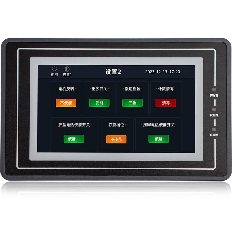 金璽HMI應用在超聲波控制上,安裝在控制機箱上對超聲波進行數(shù)據設定和監(jiān)控。